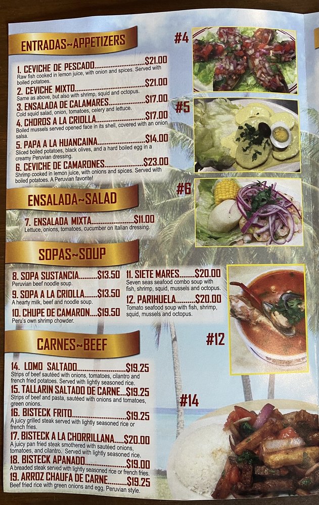 Mario’s Peruvian & Seafood Menu (Update 2025)